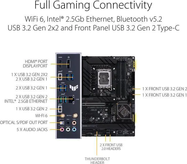 Ultra Fast Gaming Networking: WiFi 6 AX201 ( 802.11 ax), Intel I225-V 2.5G b LAN, TUF LAN