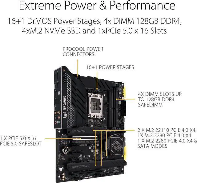 Enhanced Power Solution: 16+1 DrMOS, ProCool sockets, military-grade TUF components, and Digi+ VRM for maximum durability and performance
