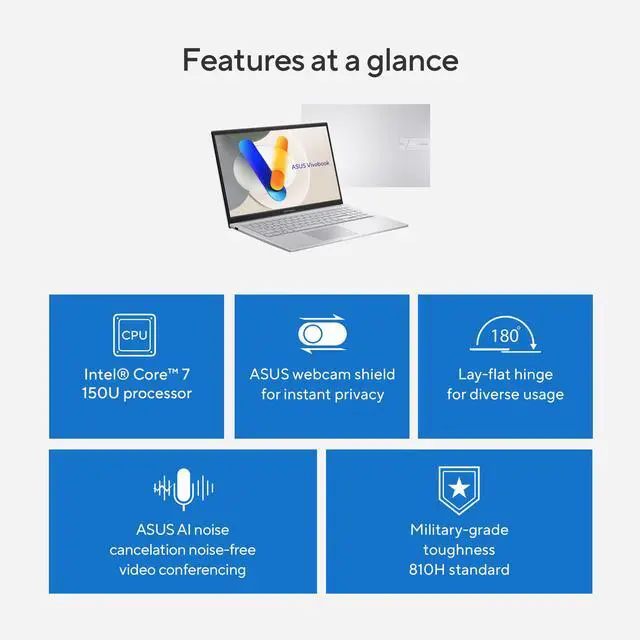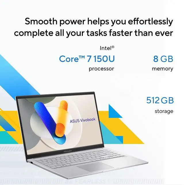 ASUS VivoBook 15.6" Laptop Intel Core 7 150U - 8GB DDR4 RAM - 512GB SSD - Windows 11 Home (90NB13Y2-M01JN0)
