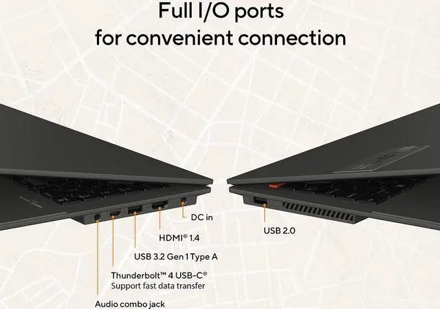 1x USB 2.0 Type-A, 1x USB 3.2 Gen 1 Type-A, 1x Thunderbolt 4 supports display/power delivery