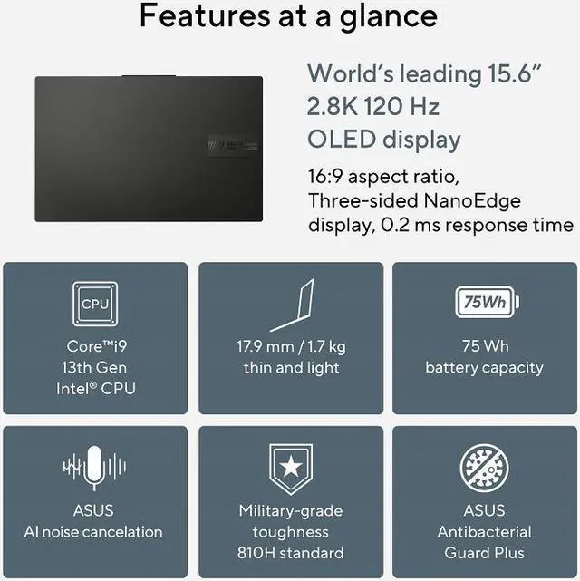 15.6” 2880 x 1800 OLED 16:9 with ultra-slim NanoEdge bezels, 120Hz refresh rate, 100% DCI-P3 color gamut, VESA CERTIFIED Display HDR True Black 600