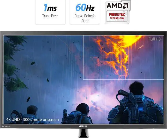 ASUS VP28UQG 28" Ultra HD 3840 x 2160 4K Resolution 1ms 2 x HDMI, DisplayPort FreeSync Technology Asus Eye Care with Ultra Low-Blue Light Flicker-Free Technology Widescreen LED Backlit LCD Monitor