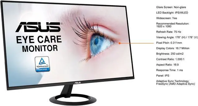 Up to 75Hz refresh rate and 1ms MPRT with Adaptive-Sync/FreeSync technology to eliminate tracing and ensure crisp and clear video playback