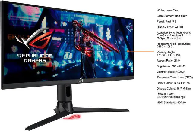 29.5-inch 2560 x 1080 HDR gaming monitor with ultrafast 220Hz (overclocking) refresh rate designed for professional gamers and immersive gameplay