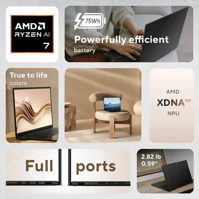 • AI Performance: Features an AMD Ryzen AI 7 350 processor with an AMD XDNA NPU (up to 50 TOPS) and AMD Radeon Graphics for enhanced AI capabilities and efficient workflow.