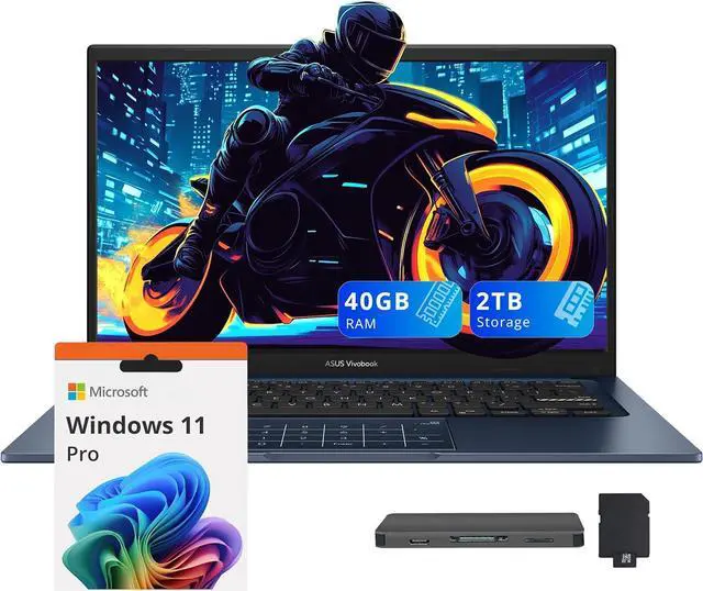 ASUS Vivobook 14 14" FHD Laptop, Intel Core i3 1315U, 40GB RAM, 2TB Storage(1TB SSD+1TB Docking Station Set), Intel UHD Graphics, 720p Camera, Win 11 Pro, Quiet Blue