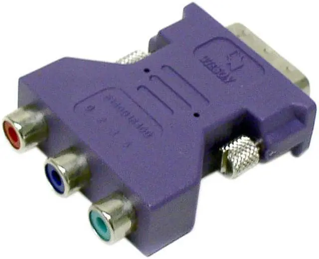 | Features | Ideal for gaming, surfing the Internet, watching DVDs on your big screen TV Supports 480i (interlaced) 480p (progressive), 720p and 1080i formats Works with any analog component (YPrPb) input device such as projectors, HDTVs, etc. Supports 4:3 or 16:9 aspect ratio Original ATI Adapter |