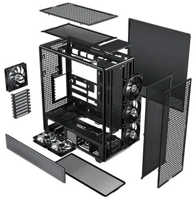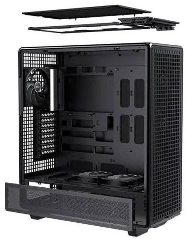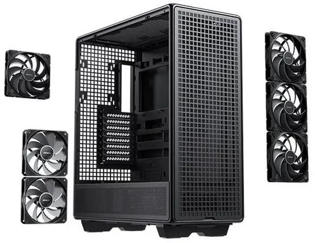 Front: 2 x 200mm / 3 x 140mm / 3 x 120mm Top: 2 x 140mm / 3 x 120mm Power Supply Shroud: 2 x 120mm Rear: 1 x 120mm / 1 x 140mm Included Fan(s): 3 x 140mm at the front + 2 x 120mm reverse fans at the PSU shroud + 1 x 140mm at the rear