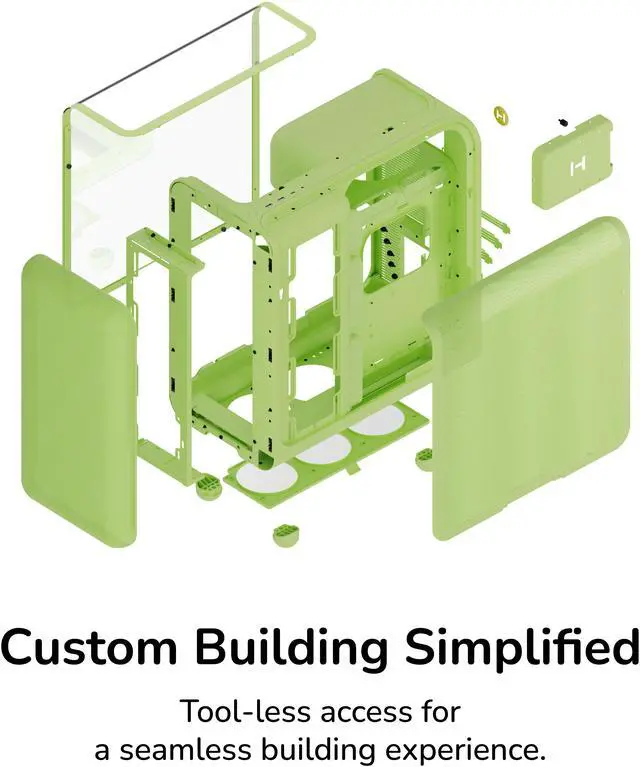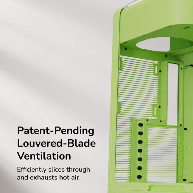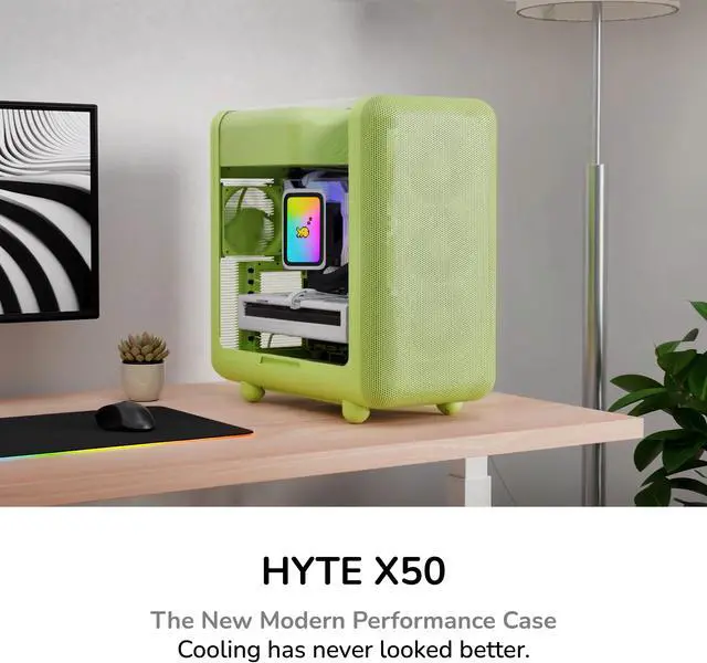 Achieve new modern performance in a HYTE X50 PC case, an industry changing computer chassis aimed at better airflow and lower temperatures while still maintaining a trendy aesthetic.Revolutionary cooling and airflow features are finally introduced thanks to the HYTE X50 case, creating a low pressure and low resistance air intake, thus increasing airflow. New louvered blade ventilation technology (patent pending) even slices through hot air using angled metal instead of punchouts. Finally, your gaming PC and the graphics card stays cooler than ever now that the power supply shroud is placed at the top, ensuring up to 360mm of fresh intake air hits straight to the GPU.