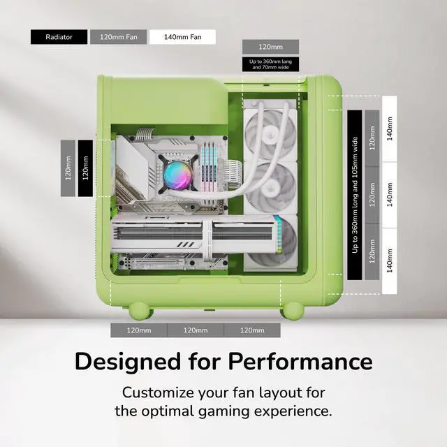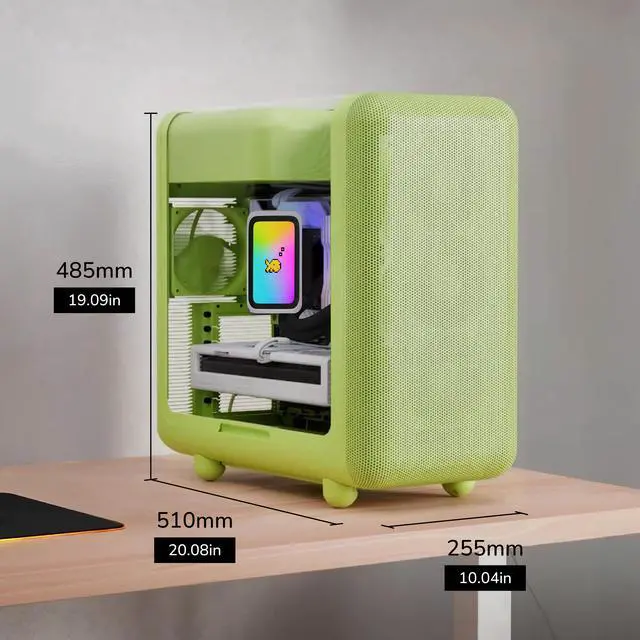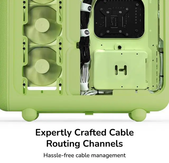 Keeping the trendy yet unique style that HYTE is known for, the X50 PC case uses a 4mm thick laminated acoustic glass with sound dampening properties and a shatter-proof layer. This disciplined design blends premium materials like curved steel and tempered glass, remaining playful yet intentional. By placing the PSU shroud at the top, cable management also becomes easier than ever by hanging down and flowing with gravity. Featuring plenty of color options for all sorts of desktop styles, experience play with the new HYTE X50 PC case.
