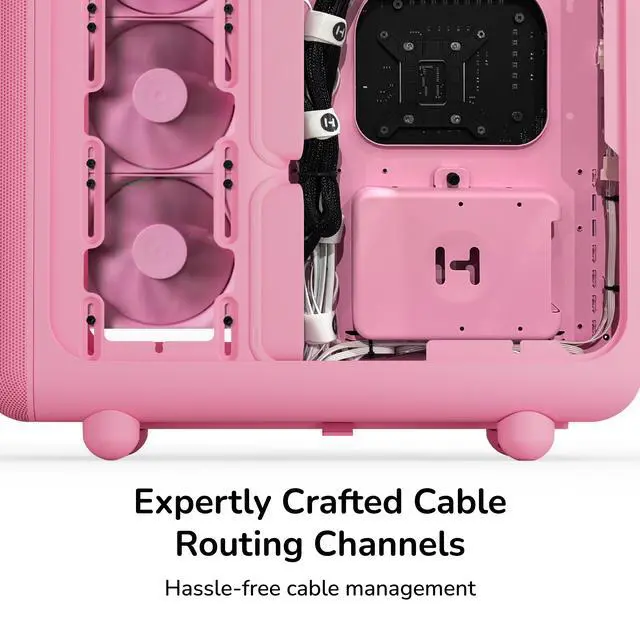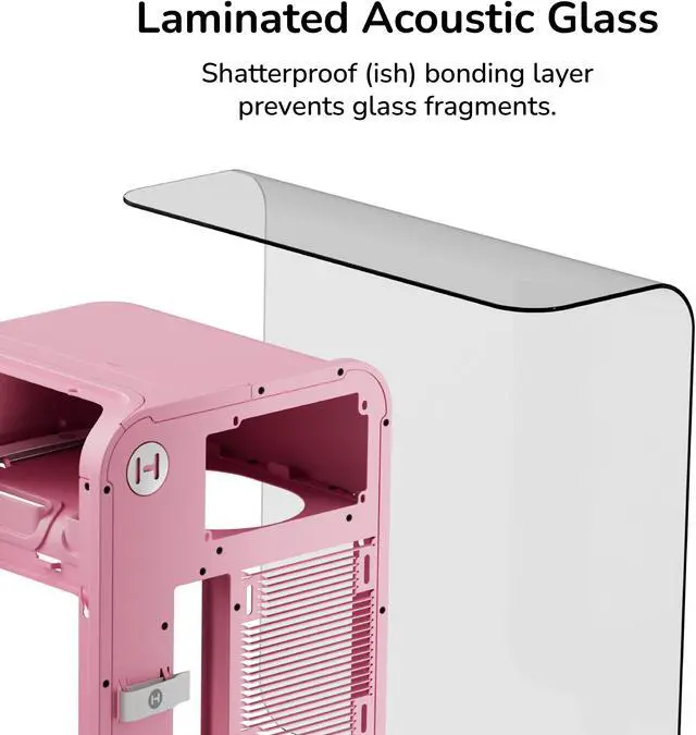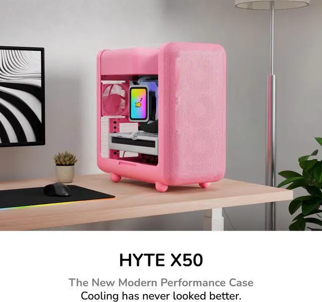Keeping the trendy yet unique style that HYTE is known for, the X50 PC case uses a 4mm thick laminated acoustic glass with sound dampening properties and a shatter-proof layer. This disciplined design blends premium materials like curved steel and tempered glass, remaining playful yet intentional. By placing the PSU shroud at the top, cable management also becomes easier than ever by hanging down and flowing with gravity. Featuring plenty of color options for all sorts of desktop styles, experience play with the new HYTE X50 PC case.
