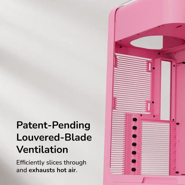 Achieve new modern performance in a HYTE X50 PC case, an industry changing computer chassis aimed at better airflow and lower temperatures while still maintaining a trendy aesthetic.Revolutionary cooling and airflow features are finally introduced thanks to the HYTE X50 case, creating a low pressure and low resistance air intake, thus increasing airflow. New louvered blade ventilation technology (patent pending) even slices through hot air using angled metal instead of punchouts. Finally, your gaming PC and the graphics card stays cooler than ever now that the power supply shroud is placed at the top, ensuring up to 360mm of fresh intake air hits straight to the GPU.