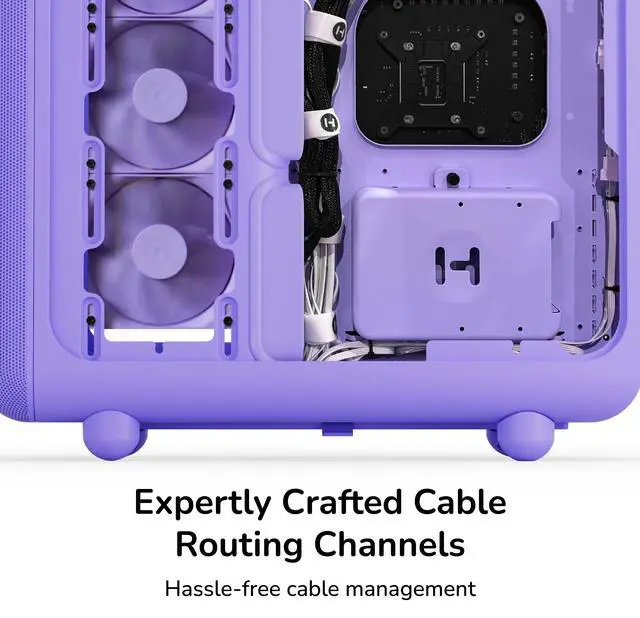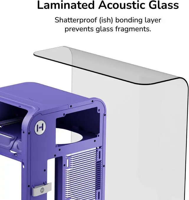 Keeping the trendy yet unique style that HYTE is known for, the X50 PC case uses a 4mm thick laminated acoustic glass with sound dampening properties and a shatter-proof layer. This disciplined design blends premium materials like curved steel and tempered glass, remaining playful yet intentional. By placing the PSU shroud at the top, cable management also becomes easier than ever by hanging down and flowing with gravity. Featuring plenty of color options for all sorts of desktop styles, experience play with the new HYTE X50 PC case.