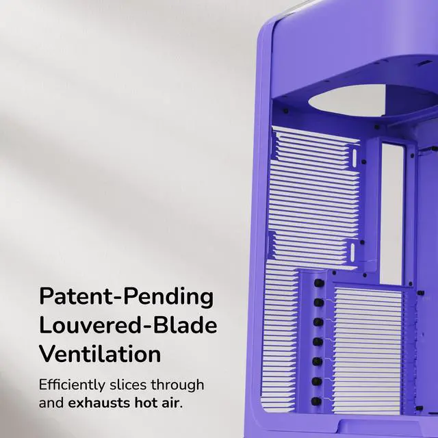 Achieve new modern performance in a HYTE X50 PC case, an industry changing computer chassis aimed at better airflow and lower temperatures while still maintaining a trendy aesthetic.Revolutionary cooling and airflow features are finally introduced thanks to the HYTE X50 case, creating a low pressure and low resistance air intake, thus increasing airflow. New louvered blade ventilation technology (patent pending) even slices through hot air using angled metal instead of punchouts. Finally, your gaming PC and the graphics card stays cooler than ever now that the power supply shroud is placed at the top, ensuring up to 360mm of fresh intake air hits straight to the GPU.