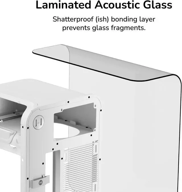 Keeping the trendy yet unique style that HYTE is known for, the X50 PC case uses a 4mm thick laminated acoustic glass with sound dampening properties and a shatter-proof layer. This disciplined design blends premium materials like curved steel and tempered glass, remaining playful yet intentional. By placing the PSU shroud at the top, cable management also becomes easier than ever by hanging down and flowing with gravity. Featuring plenty of color options for all sorts of desktop styles, experience play with the new HYTE X50 PC case.