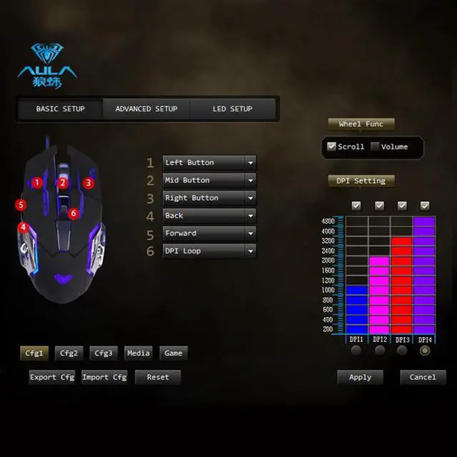 DPI adjustment, 800-1200-1600-2400DPI one-key adjustment