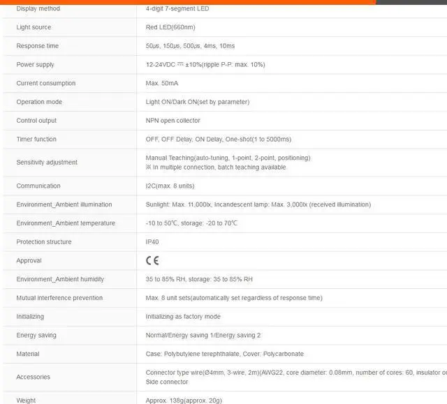 Power supply : 12-24VDC ±10%(ripple P-P: max. 10%)