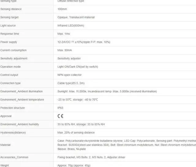 Sensing distance : 100mm