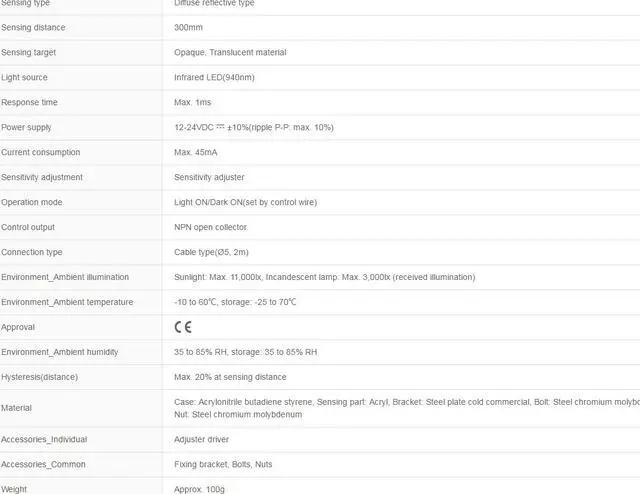 Sensing distance : 300mm