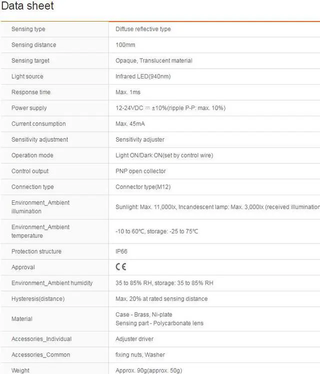 Sensing distance : 100mm