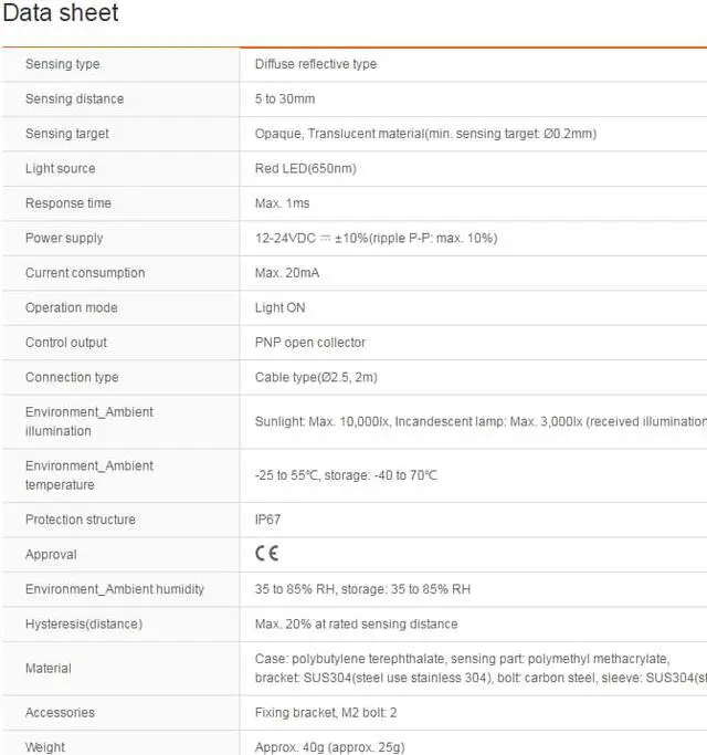 Sensing target : Opaque, Translucent material(min. sensing target: Ø0.2mm)