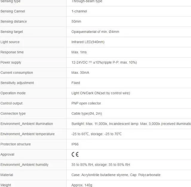 Power supply : 12-24VDC ±10%(ripple P-P: max. 10%)