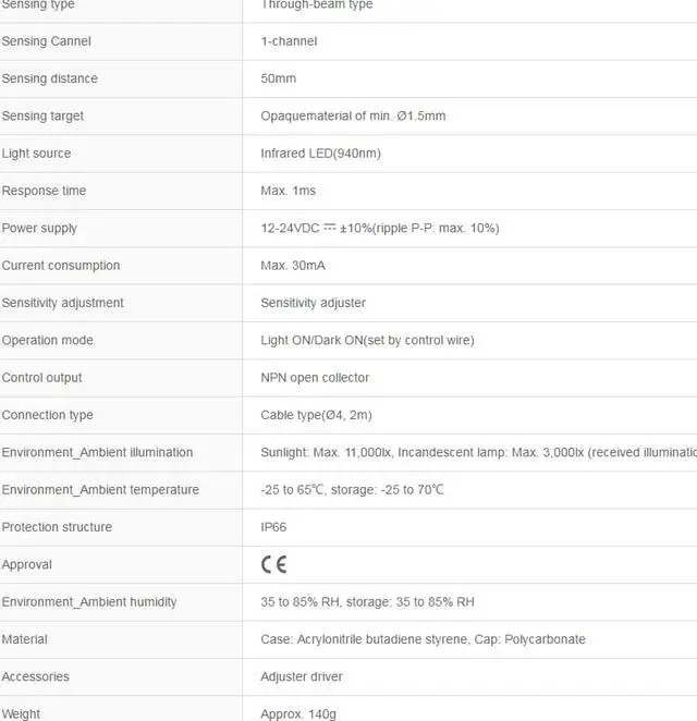 Power supply : 12-24VDC ±10%(ripple P-P: max. 10%)