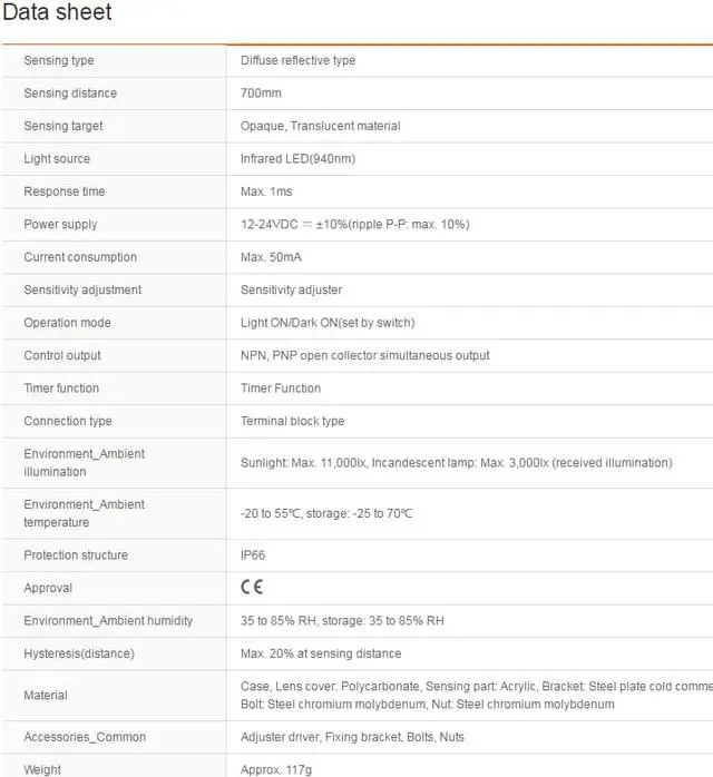Power supply : 12-24VDC ±10%(ripple P-P: max. 10%)