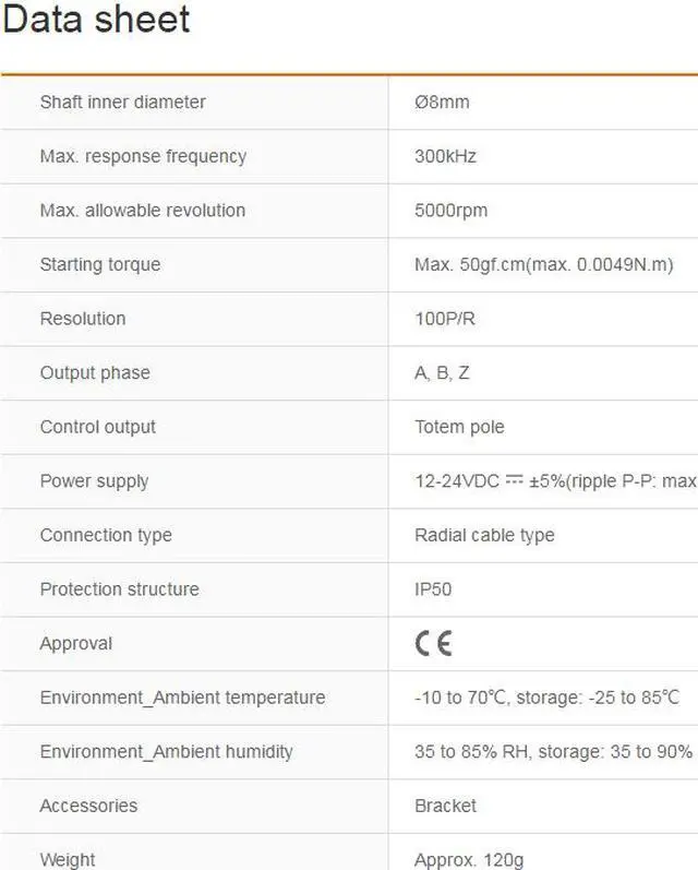 Starting torque : Max. 50gf.cm(max. 0.0049N.m)