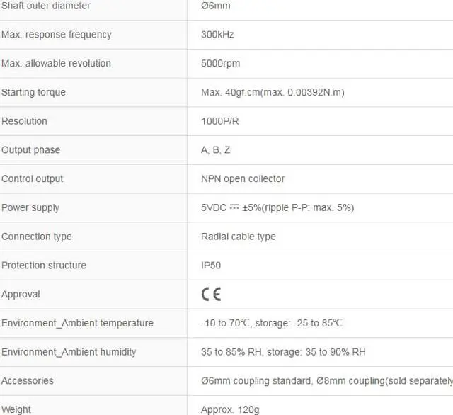 Starting torque : Max. 40gf.cm(max. 0.00392N.m)