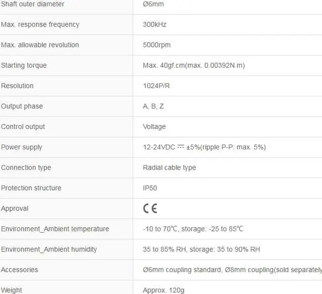 Power supply : 12-24VDC ±5%(ripple P-P: max. 5%)
