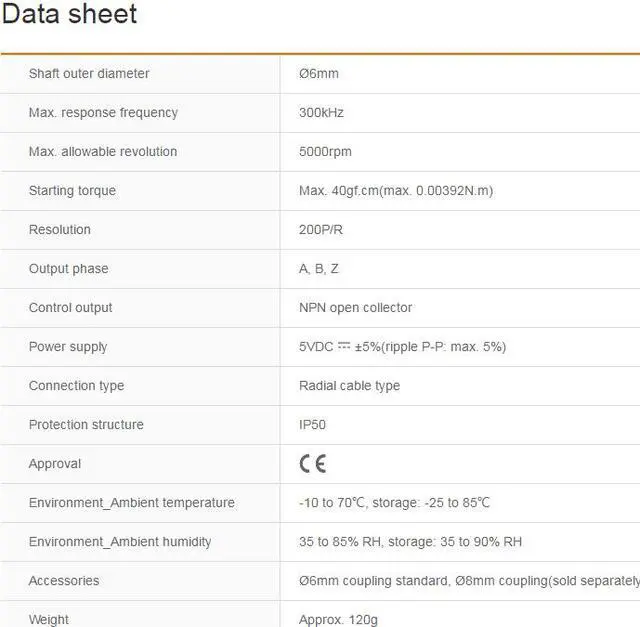 Starting torque : Max. 40gf.cm(max. 0.00392N.m)