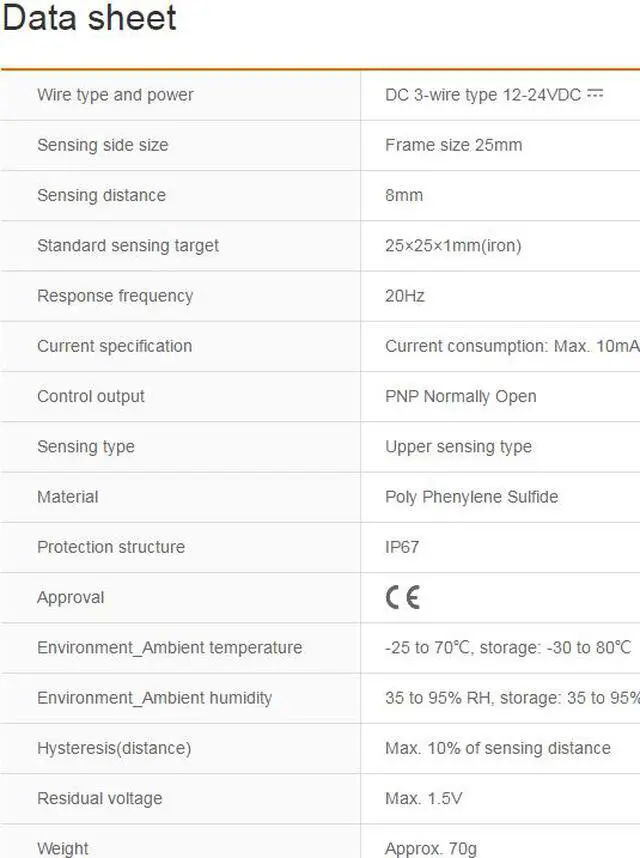 Wire type and power : DC 3-wire type 12-24VDC