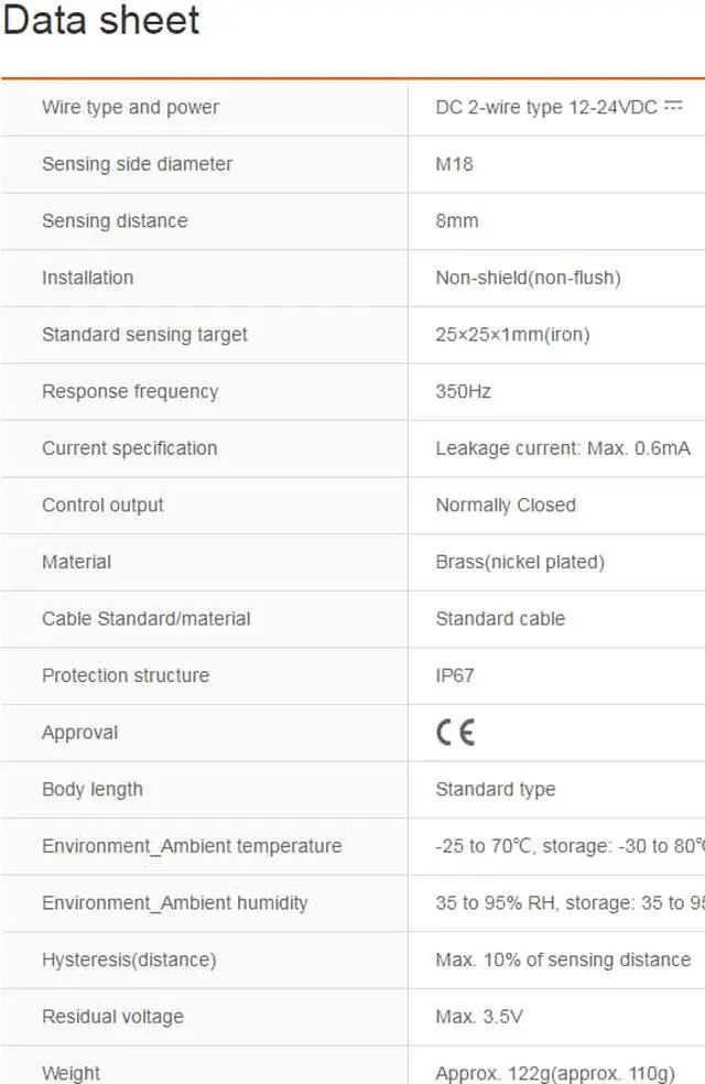 Wire type and power : DC 3-wire type 12-24VDC Sensing side diameter : M30 Sensing distance : 10mm Installation : Shield(flush) Standard sensing target : 30×30×1mm(iron)
