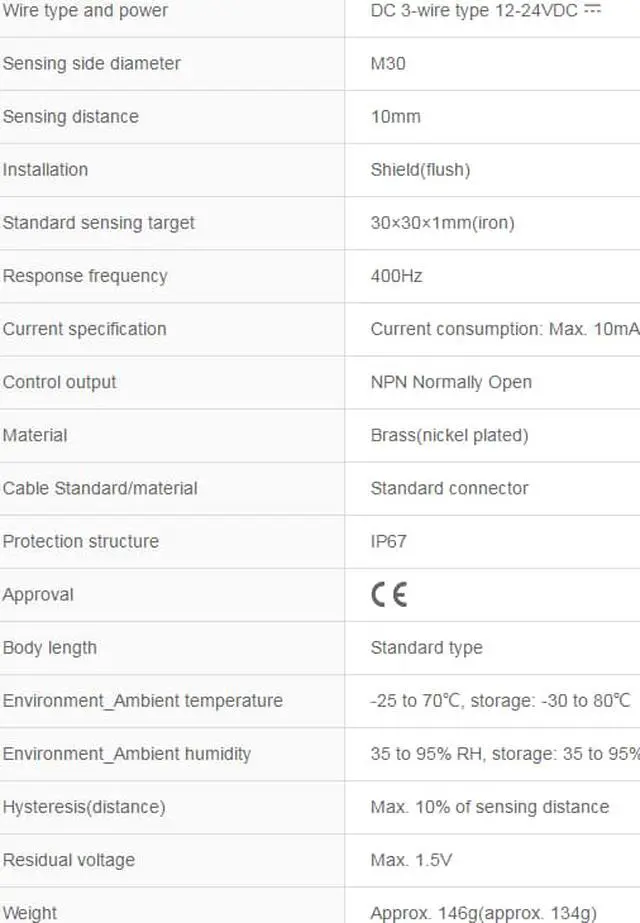 Autonics PRCM30-10DN Proximity Sensors Inductive NPN New 1PC Wire type and power : DC 3-wire type 12-24VDC Sensing side diameter : M30 Sensing distance : 10mm Installation : Shield(flush) Standard sensing target : 30×30×1mm(iron)