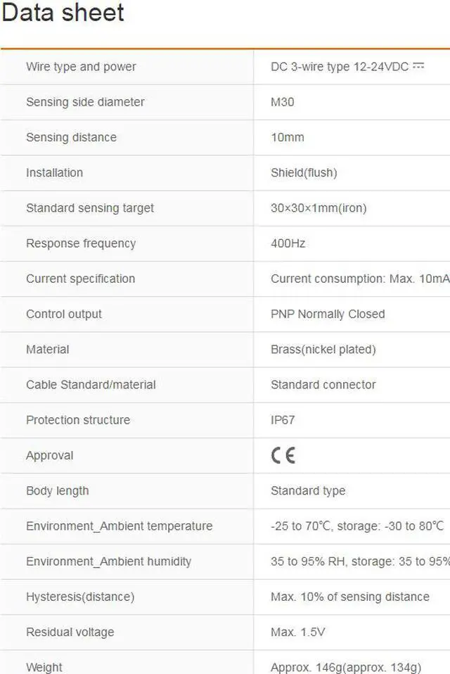 Autonics PRCM30-10DP2 Proximity Sensors Inductive PNP New 1PCS Wire type and power : DC 3-wire type 12-24VDC Sensing side diameter : M30 Sensing distance : 10mm Installation : Shield(flush) Standard sensing target : 30×30×1mm(iron)