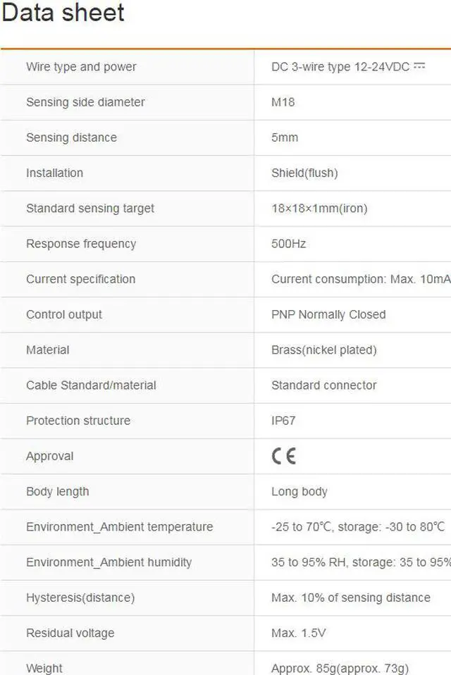 Autonics PRCML18-5DP2 Proximity Sensors Inductive PNP New 1PC Wire type and power : DC 3-wire type 12-24VDC Sensing side diameter : M18 Sensing distance : 5mm Installation : Shield(flush) Standard sensing target : 18×18×1mm(iron)