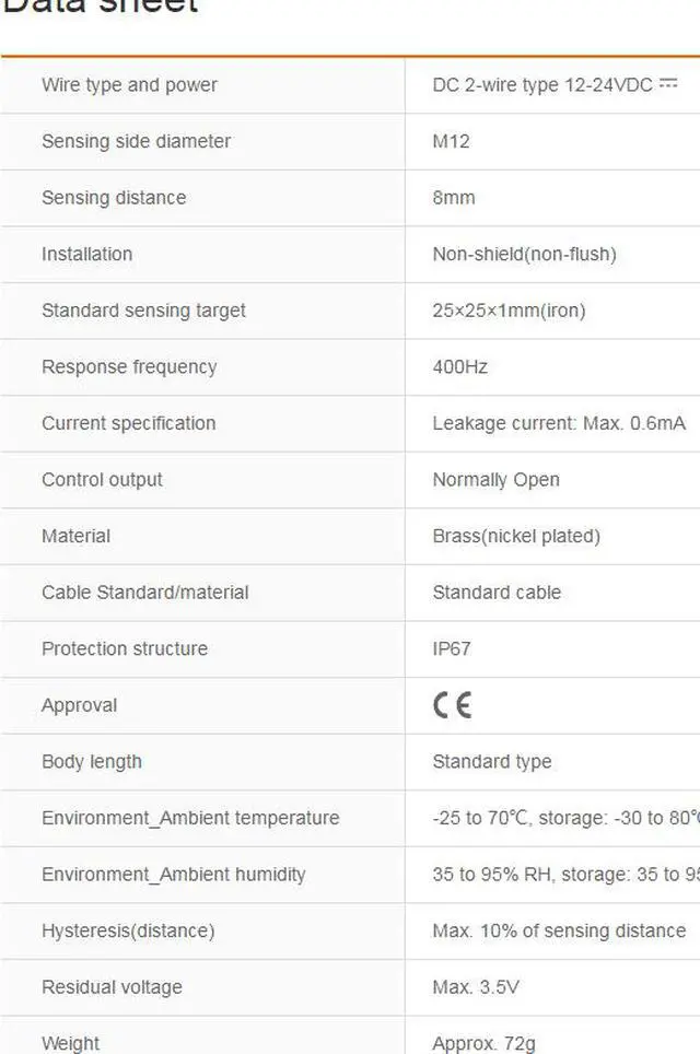 Wire type and power : DC 2-wire type 12-24VDC