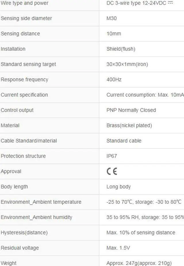 Autonics PRL30-10DP2 Proximity Sensors Inductive PNP New 1PCS Wire type and power : DC 3-wire type 12-24VDC Sensing side diameter : M30 Sensing distance : 10mm Installation : Shield(flush) Standard sensing target : 30×30×1mm(iron)
