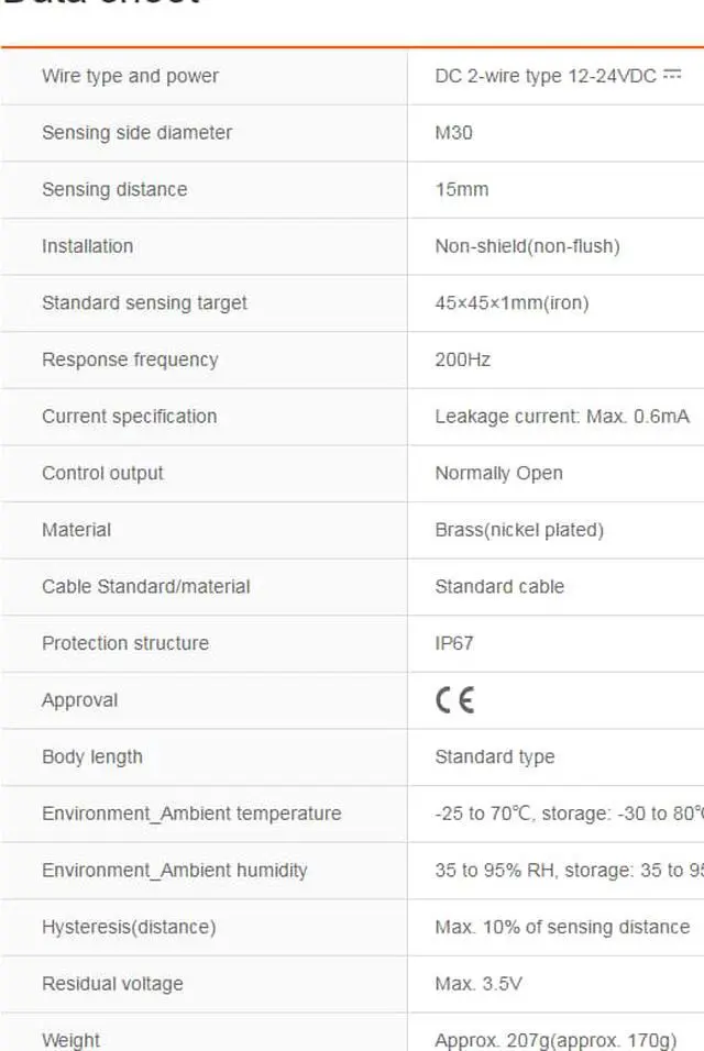 Sensing distance : 15mm
