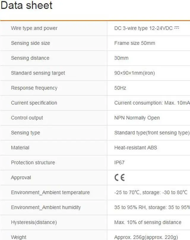 Autonics PS50-30DN Proximity Sensors Inductive NPN New 1PCS Wire type and power : DC 3-wire type 12-24VDC Sensing side size : Frame size 50mm Sensing distance : 30mm Standard sensing target : 90×90×1mm(iron) Response frequency : 50Hz