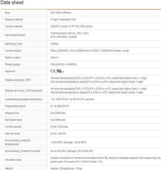 Control output : Relay (250VAC~ 3A) or SSR drive (12VDC ) [ON/OFF, phase, cycle]