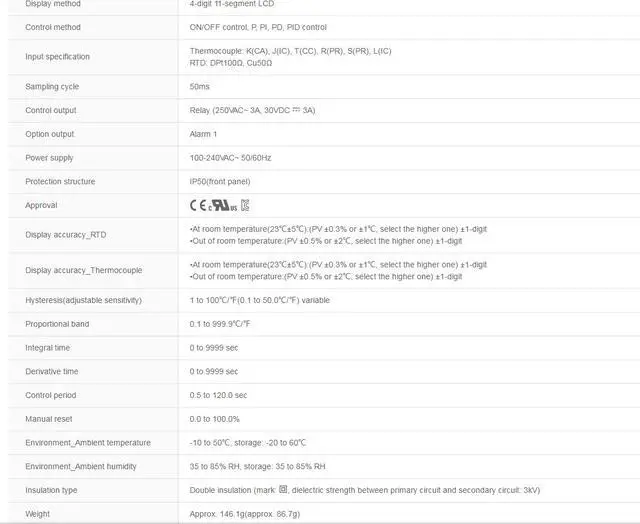 Control output : Relay (250VAC~ 3A, 30VDC 3A)