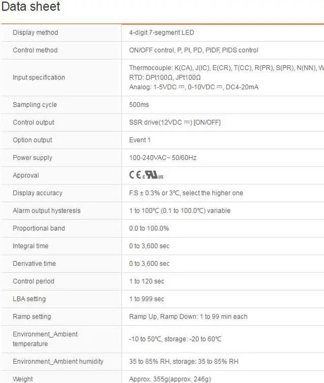 Control method : ON/OFF control, P, PI, PD, PIDF, PIDS control