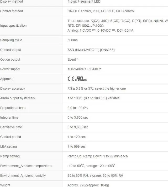 Control method : ON/OFF control, P, PI, PD, PIDF, PIDS control