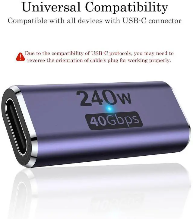 - Important Note: Ensure your USB-C cables support video transmission when using this coupler for video pass-through. If the connection doesnt work initially, try reversing the orientation of the cables plug to ensure proper functionality, as USB-C protocols depend on connector orientation.