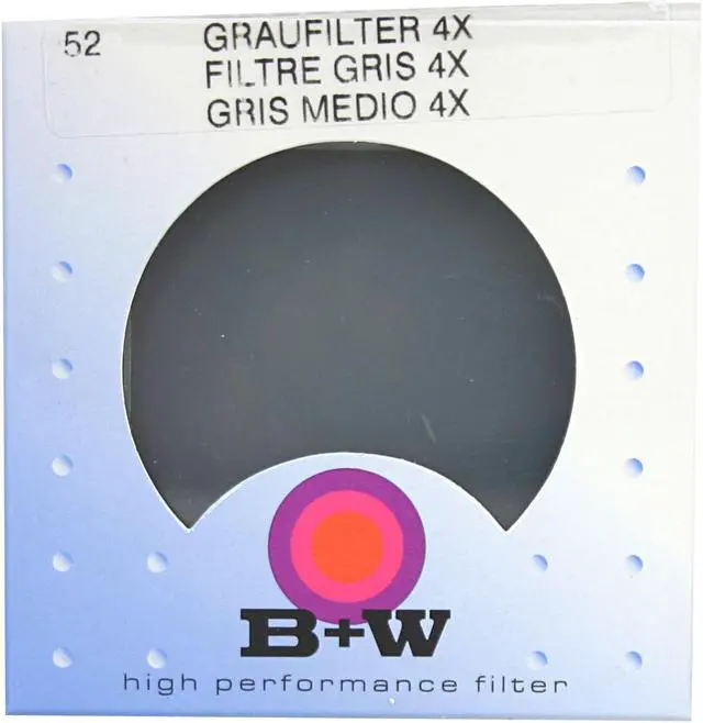 | Features | This B+W Neutral Density Filter reduces the light by two f-stops (log density 0.6), and it is the most popular ND filter in photographic work. It offers many benefits, for instance f/4 instead of f/8 for selective sharpness instead of a great depth of field, or 1/15 s instead of 1/60 s for a flowing instead of a “frozen” waterfall. It has excellent color neutrality, costs less than the denser filters, and is recommended as part of a basic outfit. The filter factor is 4x. |
