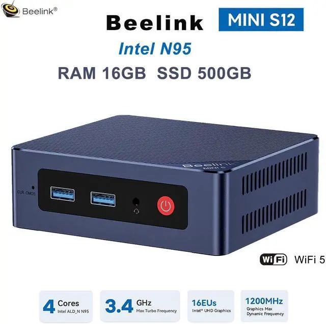 Beelink Mini Pc MINI S12, Intel N95 (up to 3.4GHz), RAM-16GB SSD-500GB, DDR4 Gaming Mini Pc for Office Home (Dark Blue)