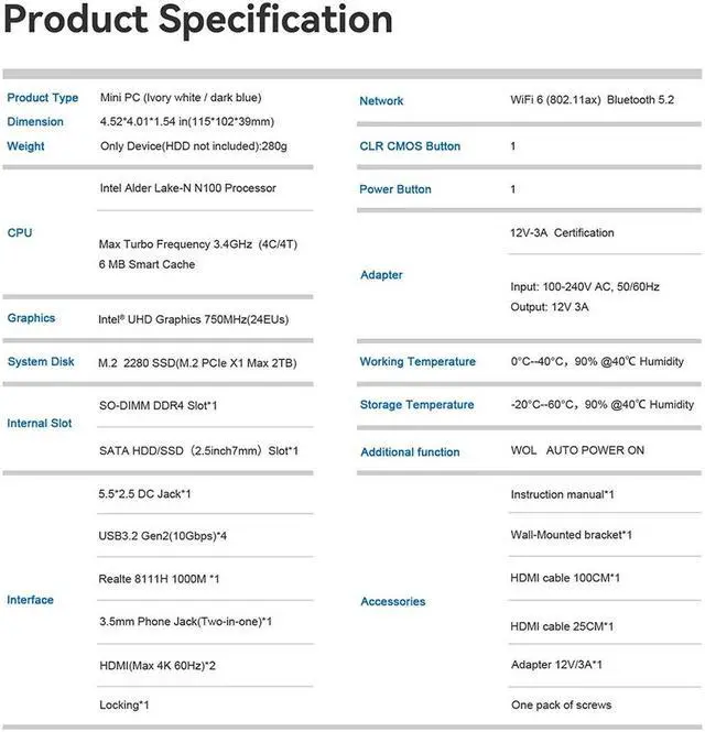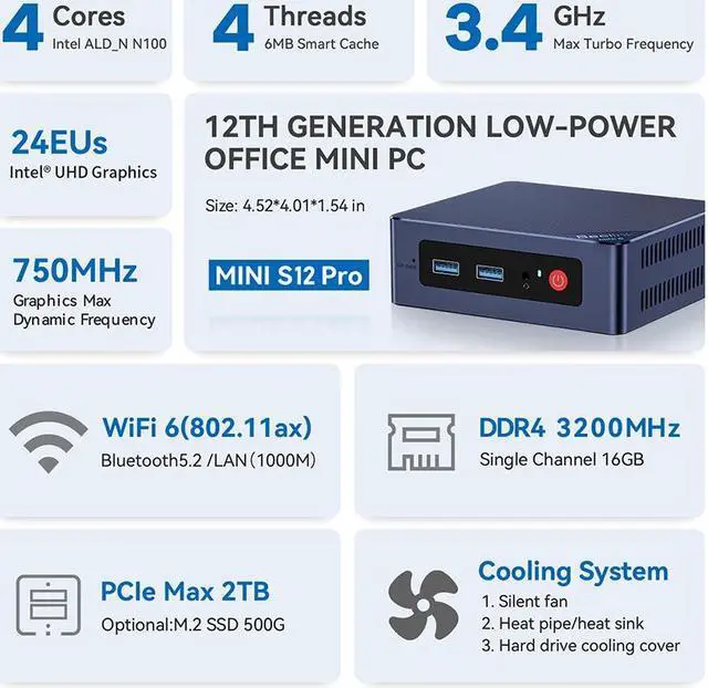 CPU:Intel 11th N100 Processor up to 3.4GHz