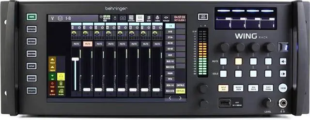 The Behringer WING Rack is a powerful 4U rackmount digital mixing engine that brings the full capabilities of the flagship WING console into a compact format ideal for touring, broadcast, and installations. It features 48 fully configurable FlexChannels, 28 stereo buses, and 24 premium Midas PRO mic preamps for pristine audio quality. A 10.1" multi-touch screen with touch-sensitive encoders provides intuitive navigation, while 16 true-stereo FX engines offer studio-grade processing. The unit supports massive I/O expandability via 3 AES50 ports, StageConnect, and USB, and includes a dual SD-card recorder and 48-channel USB interface for multitrack recording.